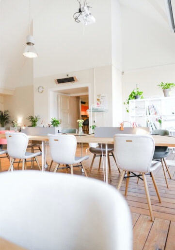 Informal drop-in meeting spaces with secure WiFi, access to a printer, scanner and photocopier.